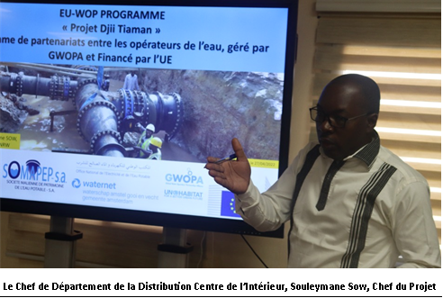 La cérémonie du lancement du projet « DJI TIAAMA » a eu lieu, le mercredi 27 avril 2022, à la Direction Générale de la SOMAGEP-SA. Placée sous la présidence du Directeur Général de la SOMAGEP-SA, Dramane Coulibaly, on pouvait noter la présence du Directeur Général de la SOMAPEP-SA, Bakary Coulibaly, du Chef de Coopération de la Délégation de l’Union Européenne au Mali, Silvie Severi et du Coordinateur du Projet World Waternet, Koën Mathius. Ce projet vise à améliorer l’accès aux services d’eau potable dans les villes de Kati, Koutiala et Sikasso.