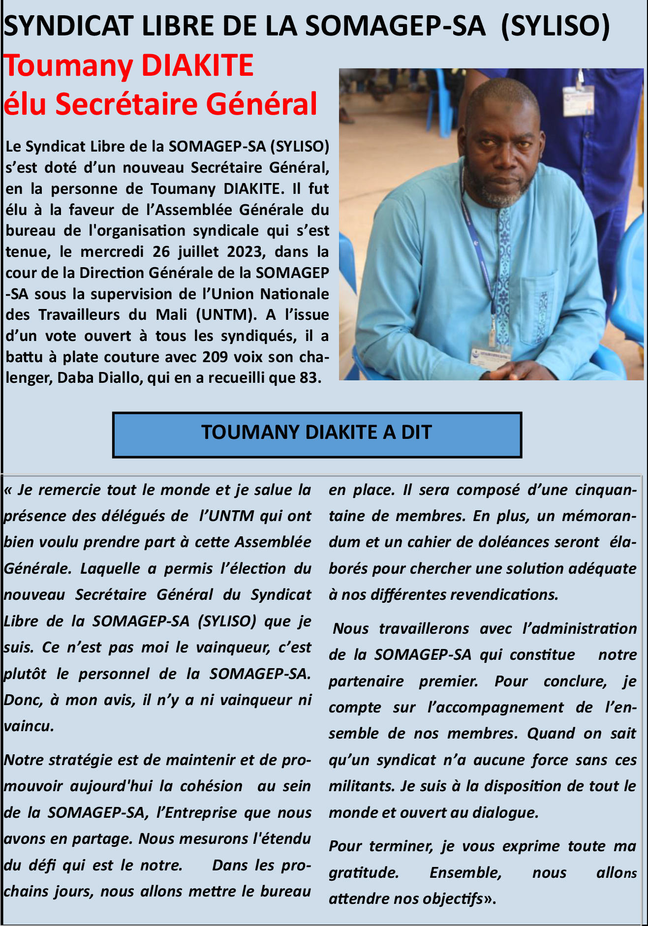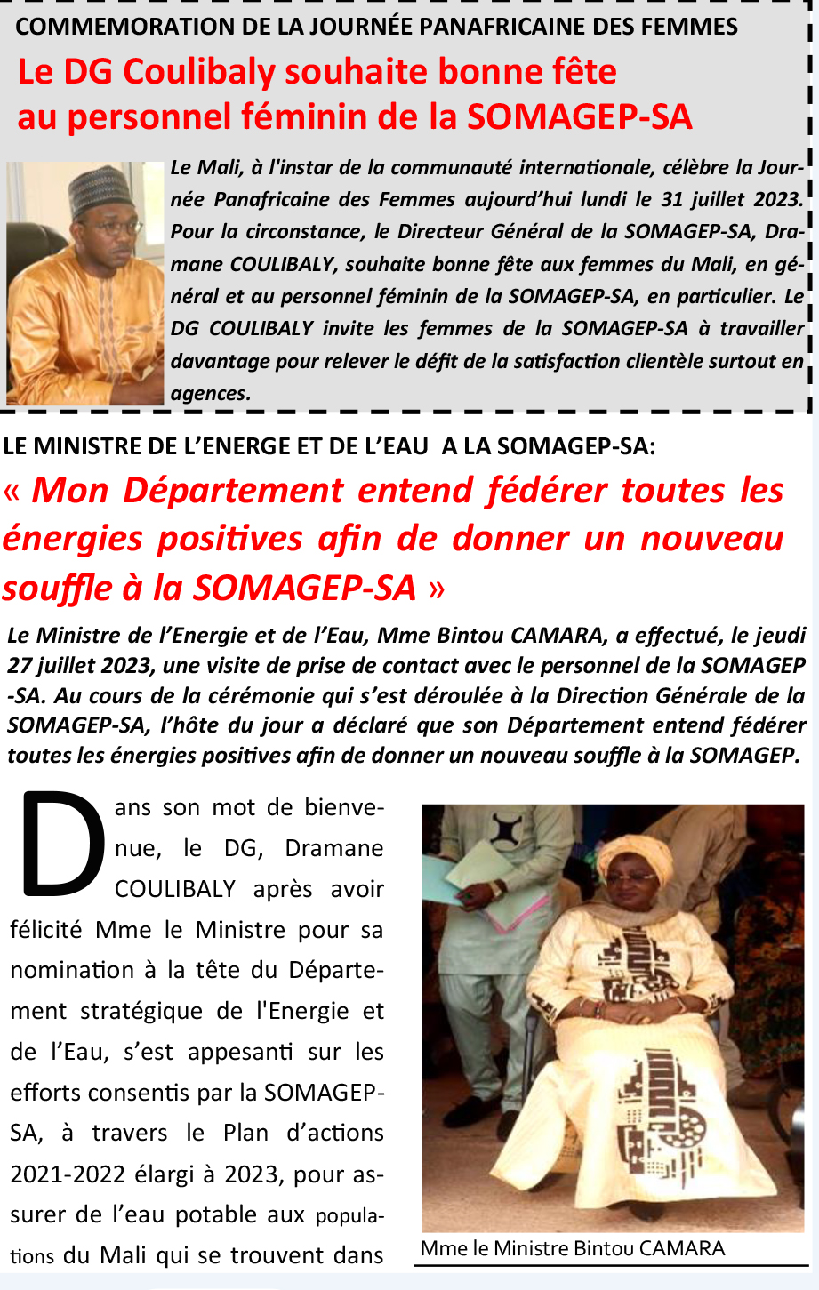 - - - Mme Bocoum Fatoumata Siragata Traoré est la nouvelle Directrice Générale de la SOMAGEP-SA - - - Elle était précédemment Directrice Générale du Centre Malien de promotion de la Propriété Industrielle (CEMAPI) - - - La nouvelle Directrice Générale a pris fonction le jeudi 5 juin 2025 - - -