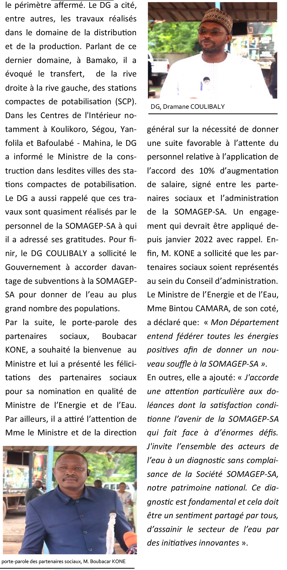 LE MINISTRE DE L’ENERGE ET DE L’EAU A LA SOMAGEP-SA: