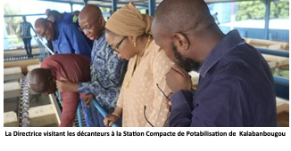 Après une visite à la Station Compacte de Potabilisation de Kalabanbougou où la baisse significative de la turbidité de l’eau du fleuve a été saluée par les équipes techniques, Mme BOCOUM a sillonné les Agences commerciales de l’Hippodrome et de Djelibougou. Objectif : échanger directement avec les agents et réaffirmer l’importance d’un accueil de qualité et d’une prise en charge professionnelle des abonnés.