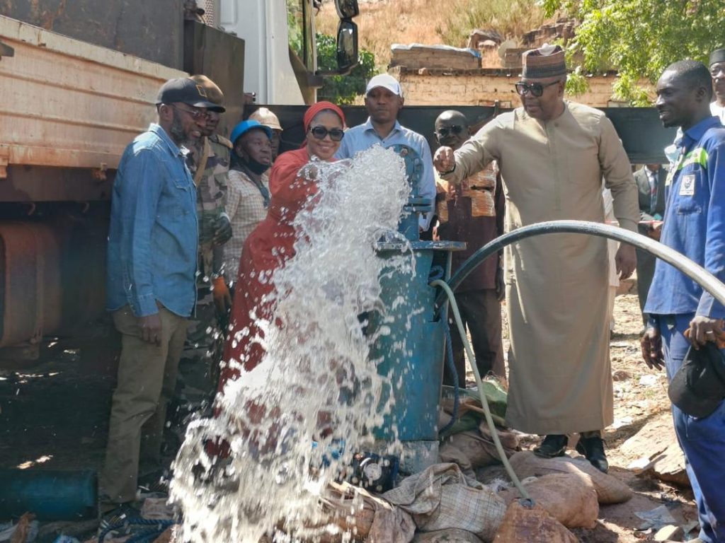 La dernière étape de la visite a conduit la délégation à Lafiabougou, où le Ministre DIANE a assisté au lancement des essais de pompage du premier forage réalisé d’une capacité de 50 m³ par heure, sous les applaudissements de la population. Un second forage est également en cours de réalisation, pour renforcer l’approvisionnement en eau du quartier de Lassa et d’une partie de Lafiabougou.